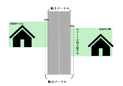 (向かい側の家も同じく0.5m下がれば、合計4mになります。)