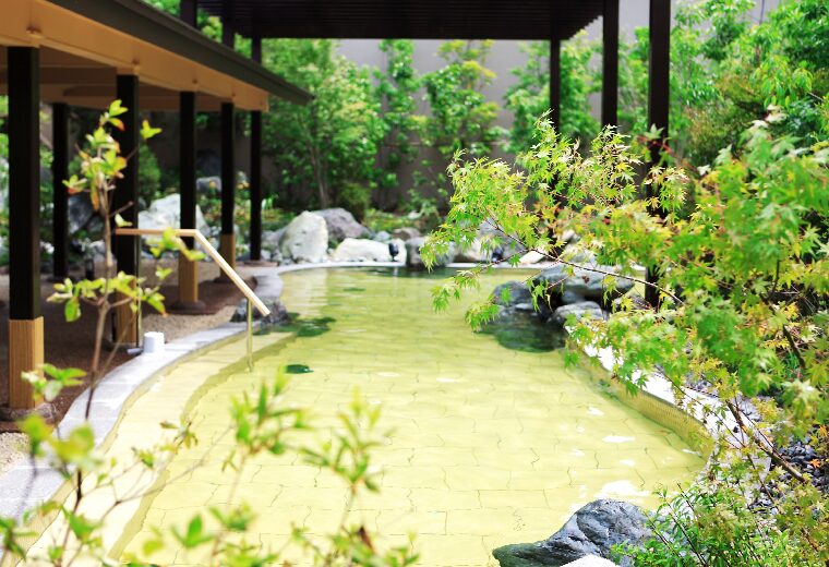 森林の湯と石庭の湯の2つのゾーンがあり、一週間ごとに男湯と女湯が入れ替わります。